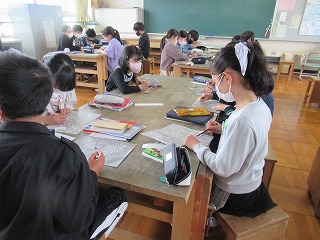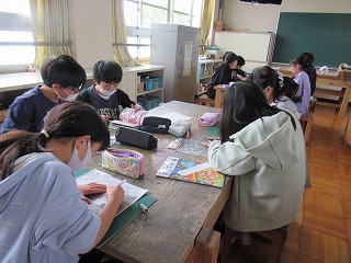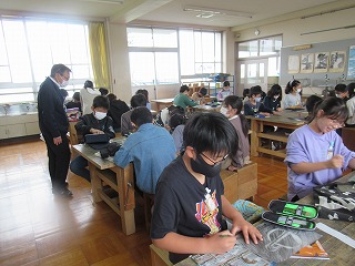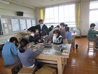 5年2組が図工室で授業を行っていました。みんな楽しそうに、活動していました。