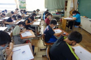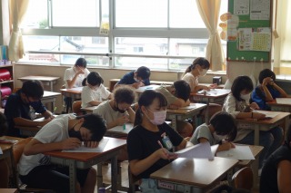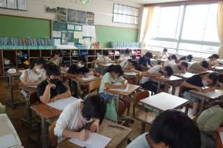 6年2組の国語は、漢字のテストでした。みなさん、落ち着いてじっくりと取り組んでいましたね。