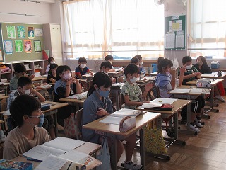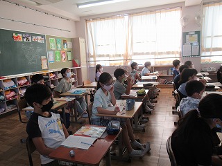 4年1組では、国語の授業が行われていました。理由も考え、読みとっていく課題でした。みんな一生懸命考えていました。