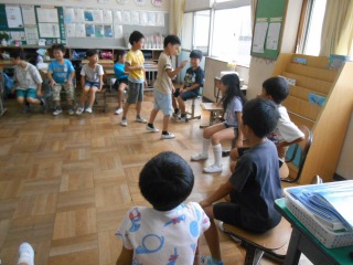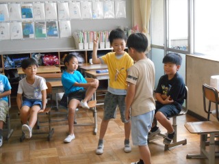 「なんでもバスケット」を行っていました。お相子になった2人が、じゃんけんをしていました。