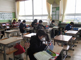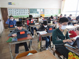 6年1組では、国語の時間、タブレットを使い、学習のまとめをしていました。