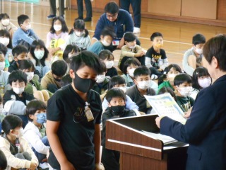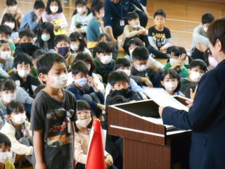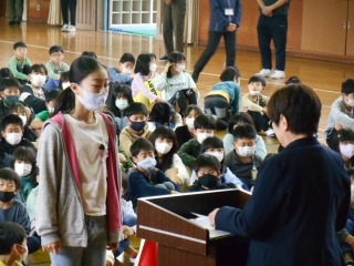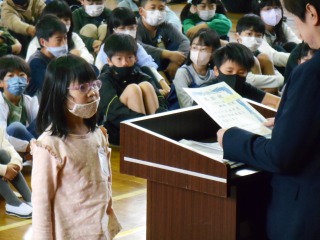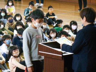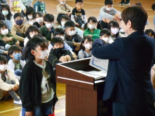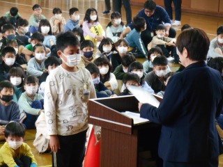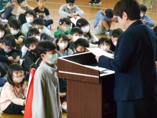 その後、委員長・学級委員の認証を行いました。今後の美和小学校を引っ張てくれるリーダーです。よろしくお願いします。