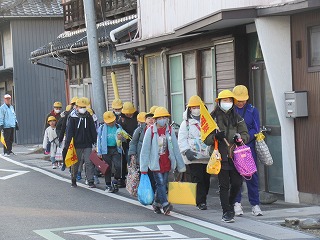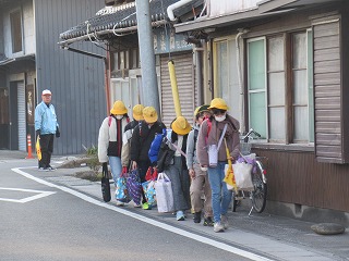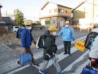 南門の通学班の登校の様子です。今日は、厳しい寒さです。見守り隊の皆さんも寒い中、子どもたちを見守ってくださっていました。