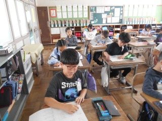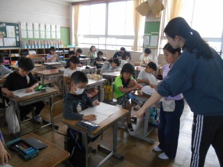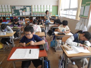テスト直しをしていました。割り算のひっ算の見直しをしていました。