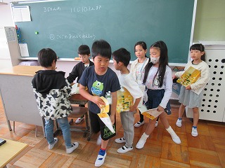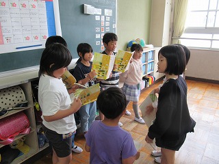 2年2組は国語の時間でした。グループで集まって音読の練習を行っていました。多くの子が意見をかわしながら上手に取り組むことができました。