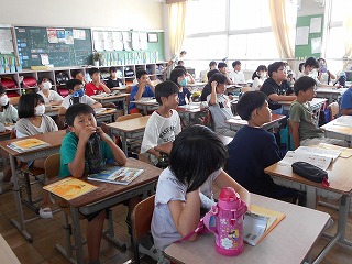 5年1組では、社会の授業が始まるところでした。学級に向け、担任の先生が話をしていました。