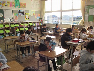 2年1組では、朝読書を行っていました。