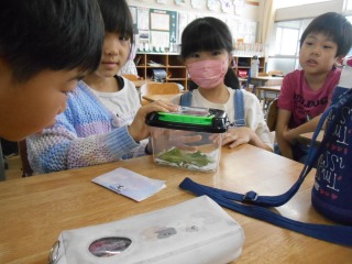 みかんの木やキャベツの裏に見つけた、卵を育てています。幼虫が生まれ、毎日観察をしています。