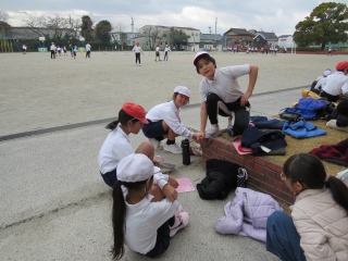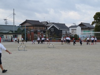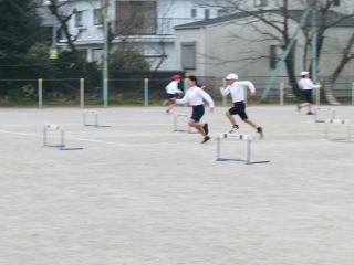 ハードル走に取り組んでいました。ワークシートに記録を書き、これまでの記録の伸びと、次の記録更新に向けてどうすべきか書き込んでいました。