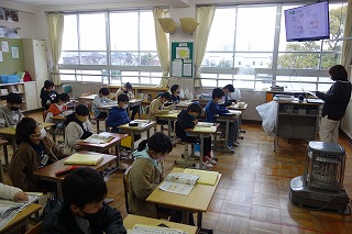 4年2組の外国語活動は、「This is my day」の学習でした。
