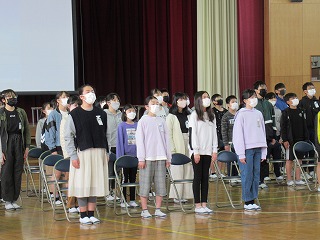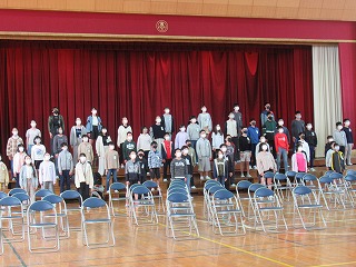 卒業式をいよいよ明日に控えました。6年生は、マスクを外すタイミング、つけるタイミングを練習していました。立派な姿に胸が熱くなりました。