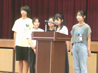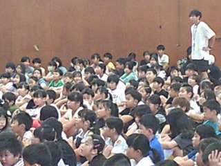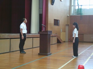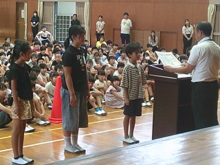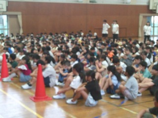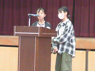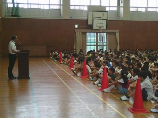 気候が涼しくなり、今日は久し振りの体育館で全校児童が集まった朝礼となりました。校長先生のお話から始まり、読書感想文の表彰、児童会からのミワリンピックについての連絡、生活委員からの今月の生活目標の周知がされました。