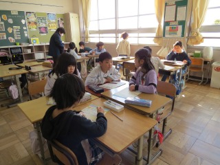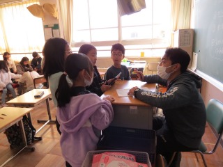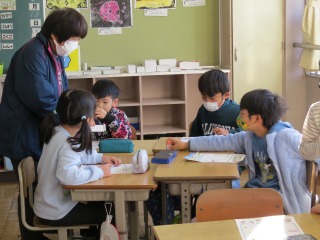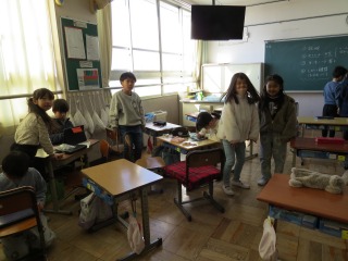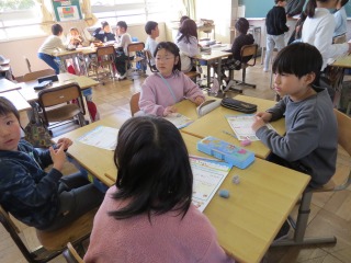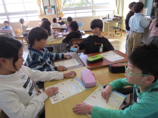 お楽しみ会を企画していました。小グループに分かれて、各グループで企画をしていました。なかには、折り紙で景品を作っているグループもありました。