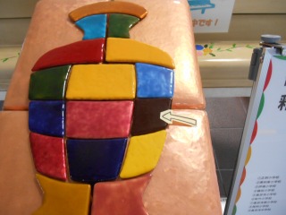 昨日から、ギャラリーホールにあま市の小中学生が力を合わせて制作した、七宝焼きの作品が展示されています。休み時間になると、何人かの児童が見に来ています。