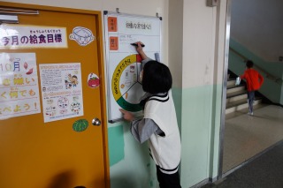給食委員のみなさんが、今日の掲示を用意していました。