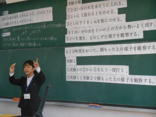 教育実習の先生による、理科の研究授業を行いました。予想を立てた上で、実験を行い、考察をしていました。実験を楽しみながら、学習することができました。
