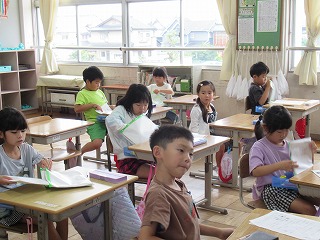 1年2組では、すくすく週間のプリントについて、担任の先生のお話を聞いていました。
