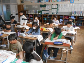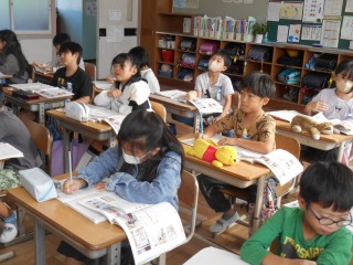 スーパーマーケットについての学習です。お店の人の工夫として「ご意見ボード」をなぜ設置しているか、みんなで考えていました。