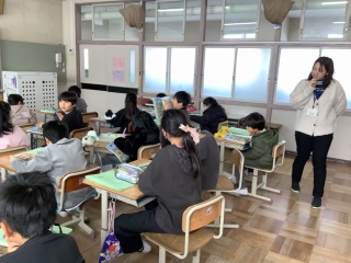 "What's this?" を使った会話表現を学習していました。教科書にある不思議な写真を見て、何が写っているか考えていました。