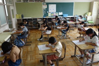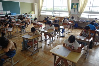 4年2組の算数は、テストでした。夏休み明けでしたが、みなさん集中して取り組めていましたね。