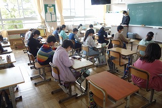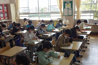 4年1組の算数は、図形の復習プリントに取り組みました。