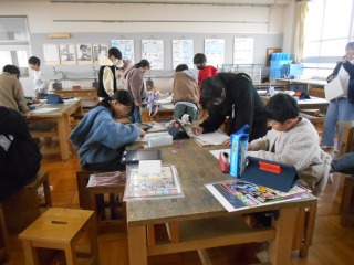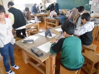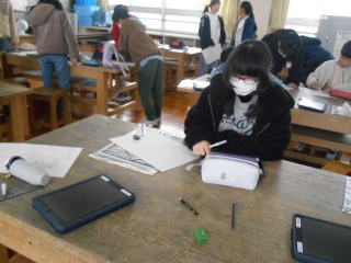 版画の政策をしていました。まずは下書きを完成させようと頑張っていました。