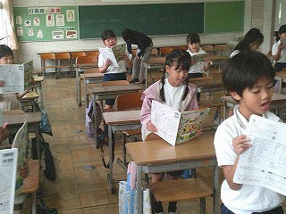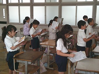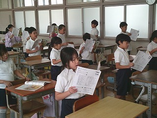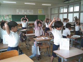 歌う前に、準備体操をしていました。体操が終わった後は、笑顔でみんなで歌って楽しんでいました。
