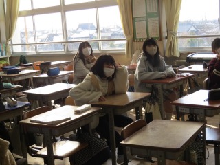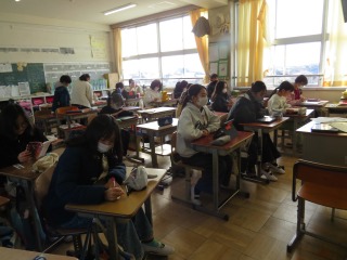 2クラス合同で、アルト担当の子は音楽室でパート練習をしていました。他のパートの子は、教室で各自の課題に取り組んでいました。