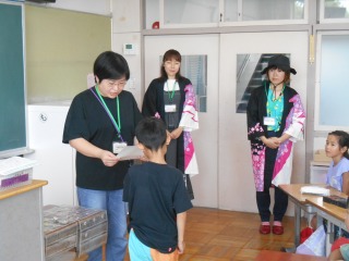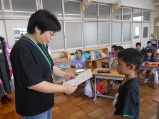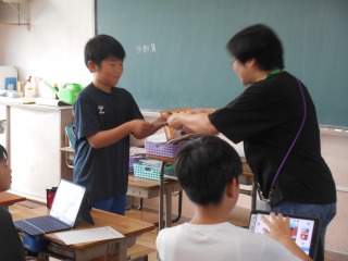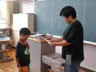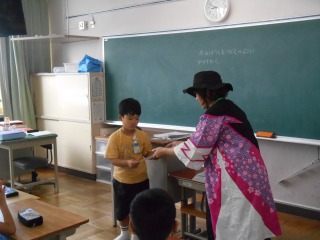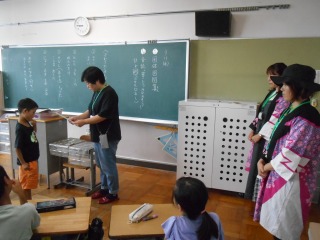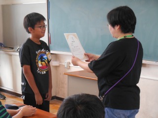8月にPTAボランティアの皆さんが行った「みーわんフェス」の表彰をしました。「くつとばしゲーム」において全校で4名の児童が表彰され、ボランティアの方が各教室で表彰式を行ってくださいました。自然と拍手が起きて今市tあ。4名の皆さん、おめでとう!