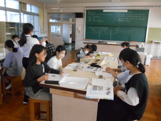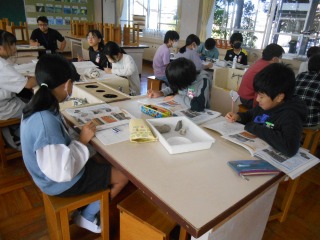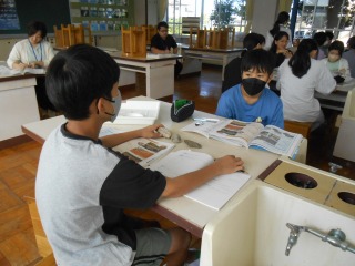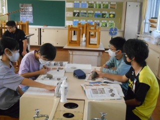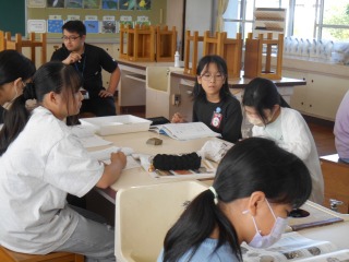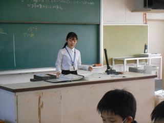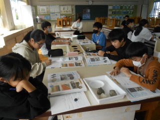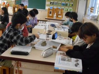 理科室で石について学習していました。教育実習生による授業が行われていました。