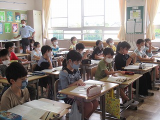 4年1組では、国語が授業が行われていました。先生の説明をしっかり聞く姿が見られました。