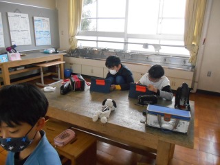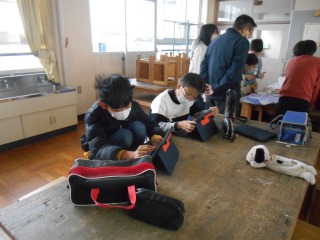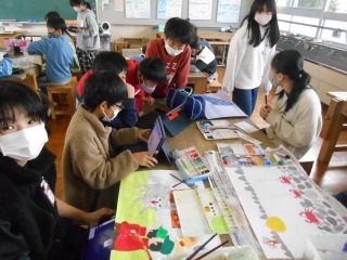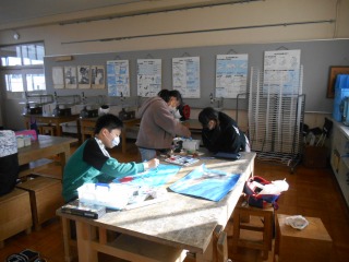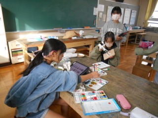 読書感想画を完成させようと頑張っていました。宮沢賢治の作品をえらんで、描いていました。