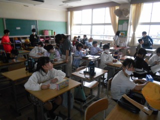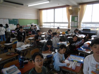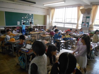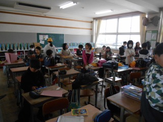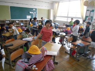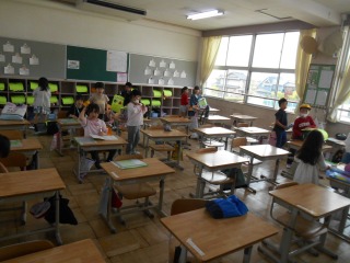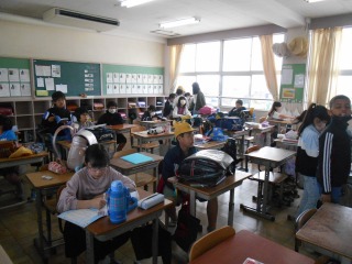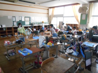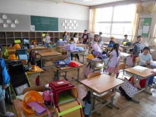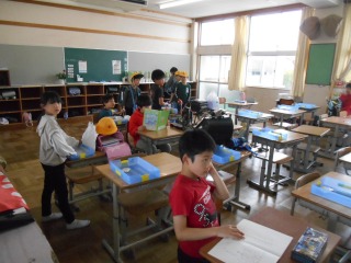 てきぱきと荷物を片付け、連絡帳を書いていました。