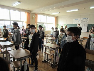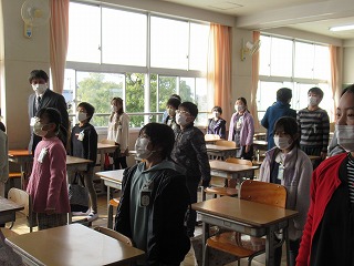 3年1組では、音楽の授業が行われていました。最初は、校歌の合唱でした。すばらしい歌声が響きました。
