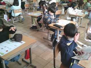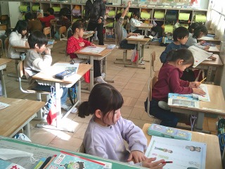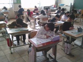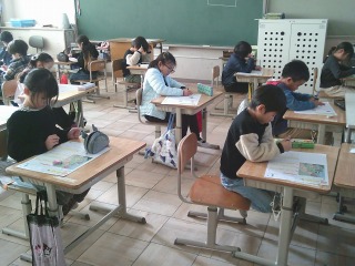 回文のテストに取り組んでいました。上から読んでも、下から読んでも同じ音の文を楽しみながら、解答していました。