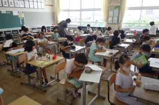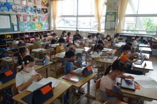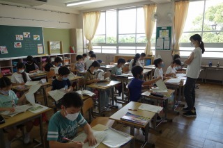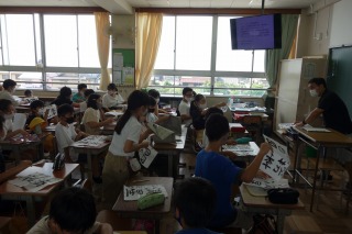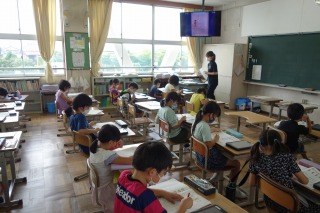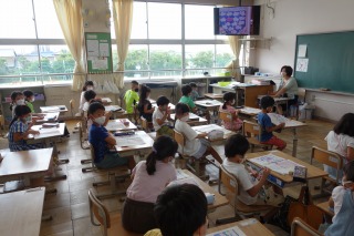 多くの学級では、課題の提出、提出作品の紹介、課題の答え合わせが行われていました。