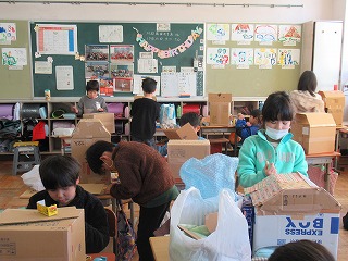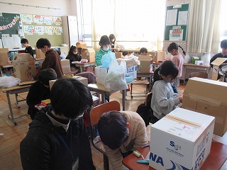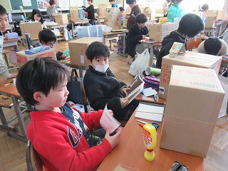 2年2組では、図画工作の時間、自分のお部屋を段ボールを使い、楽しそうに作っていました。