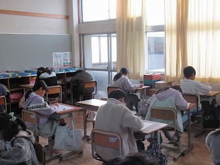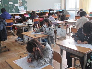 4年1組では、国言の時間、テストを行っていました。みんな一生懸命、取り組んでいました。