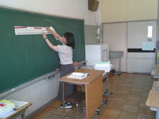 1~20の数字を吸いう直線から読み取っていました。長~い数直線を先生が貼ると、さっそく何人かの子が数字を読んでいました。