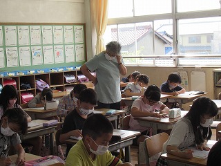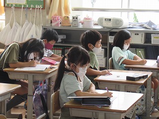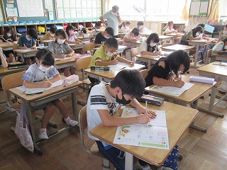 2年2組では、書写のノートを静かに行っていました。きれいな文字が書けるように丁寧に書いてくださいね。