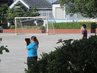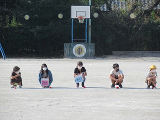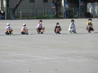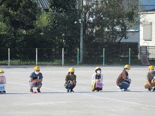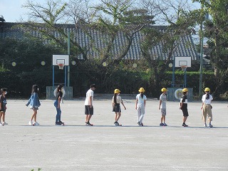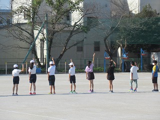 朝の時間を使い、全校練習に向けて、代表の子どもたちが位置の確認をしていました。