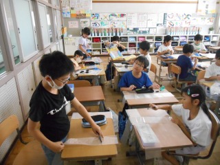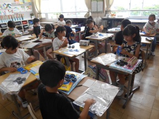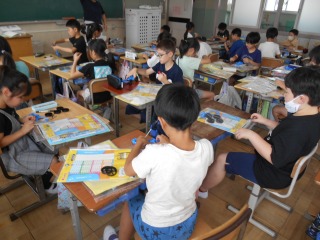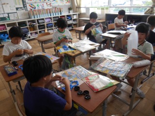車作りの準備です。部品をなくさないように、パーツを確認していました。