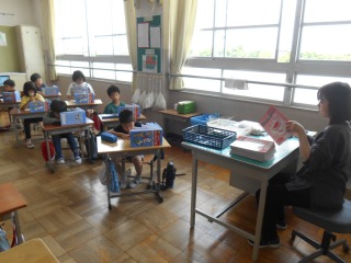 漢字の小テストを行っていました。マスいっぱいに丁寧に書いている子が多くいました。