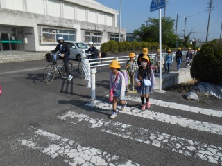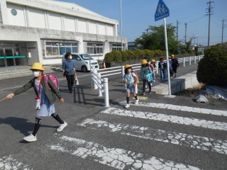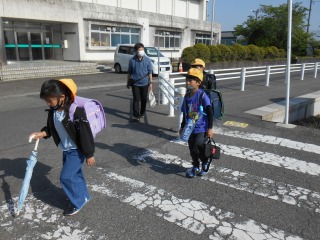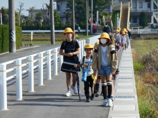 さわやかな晴天です。小さい子の多い通学班もありますが、班長・副班長が安全に心がけて一緒に来てくれます。