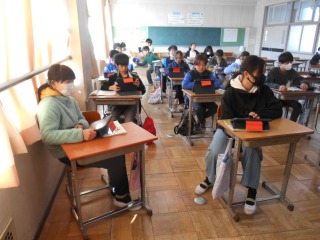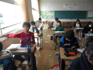 準備室では合奏を、音楽室ではタブレットを使って節づくりをしていました。