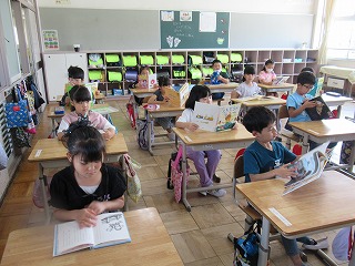 1年2組では、朝読書をしていました。