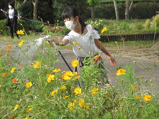飼育委員の子どもたちが、うさぎが亡くなってしまい、かわりに花だんの花に水をあげてくれていました。まだまだ暑い日が続きます。ありがとうございます。