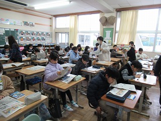 4年1組では、朝の会の時間、各種新聞が配られ、間違い探しなど、楽しそうに行っていました。