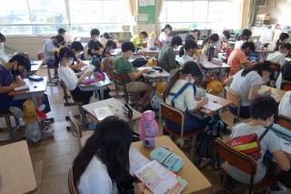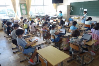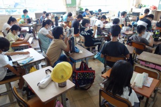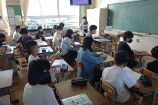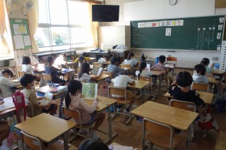 朝の教室では、朝の学習の時間に、読書やドリル学習をしたり、学習にタブレット端末を使ったり、問題の答え合わせをしたり、グループの音読練習をしたりと、幅広く学習に取り組んでいました。