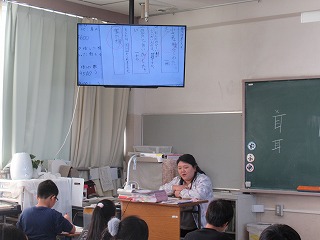 3年1組では、国語の時間、大型モニターを使い、学習していました。